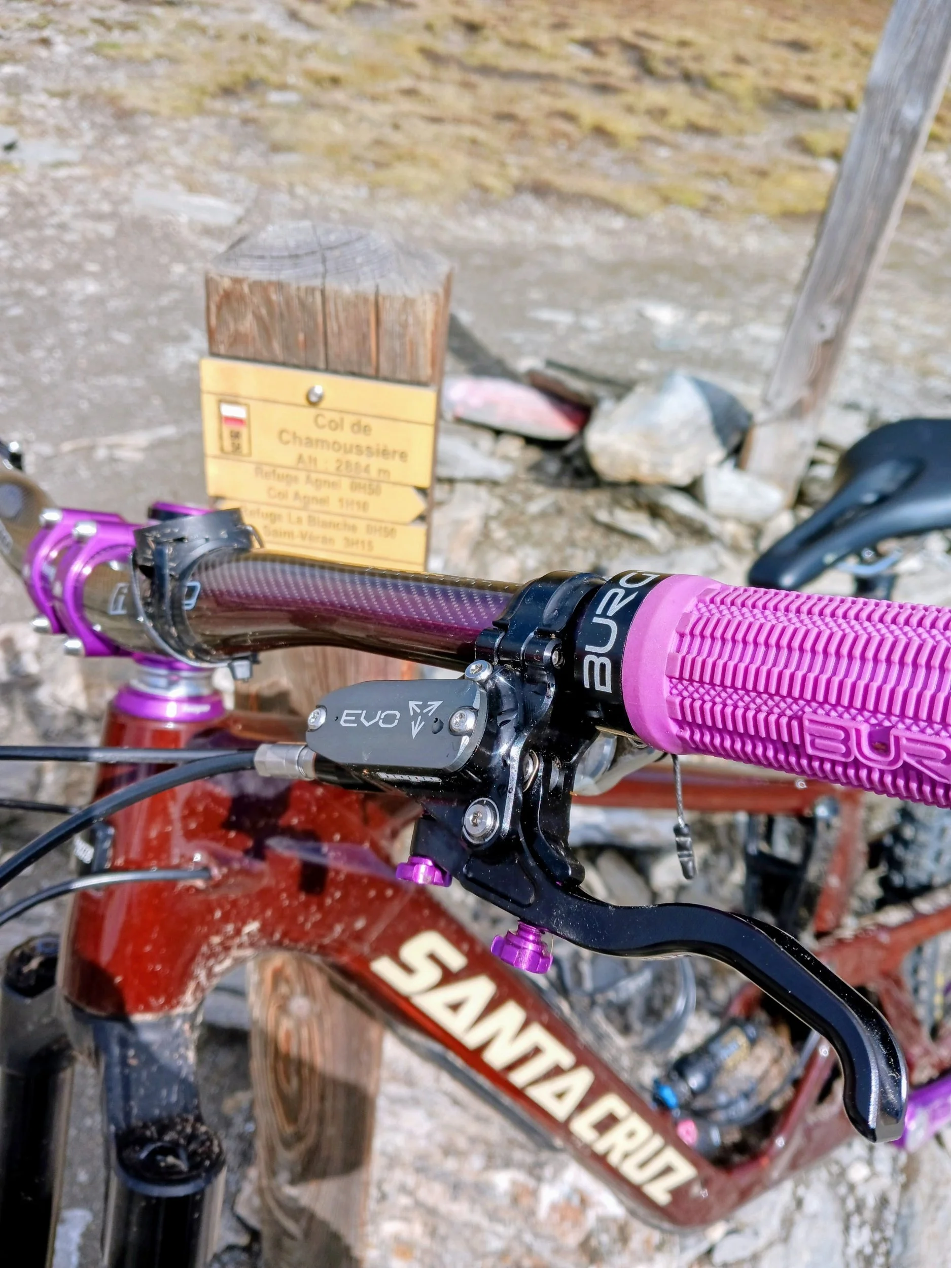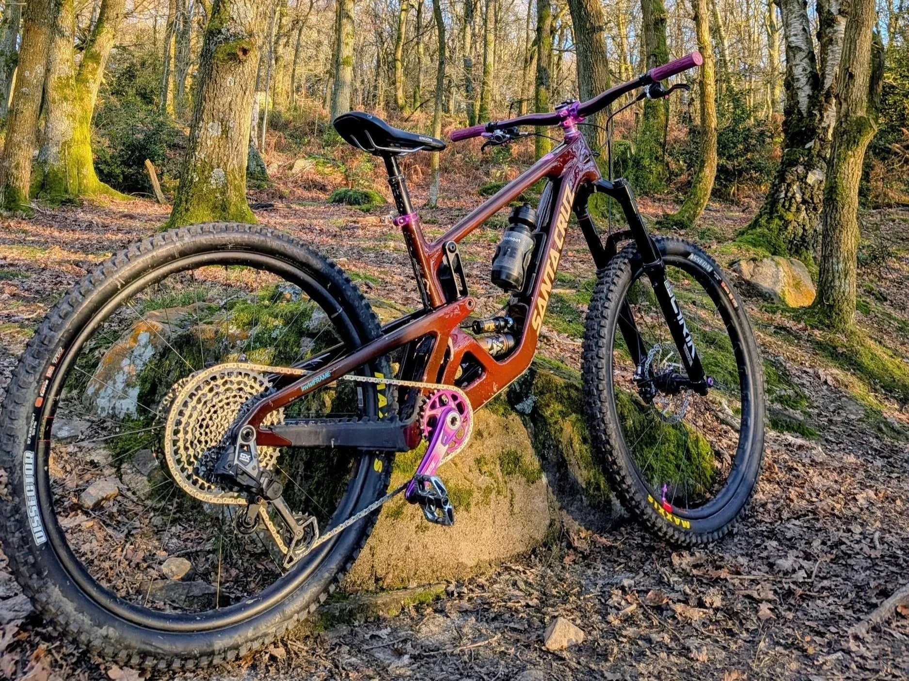 Julia rode a Juliana Maverick (Santa Cruz Hightower) for several guiding seasons, and since 2023 has been riding a Santa Cruz Bronson MX). Both of these are ideal for the riding you’ll find on any of our trips in Scotland or the Alps.